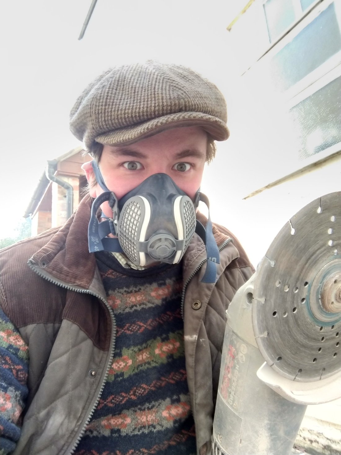 More labouring for Mr G today – after a healthy and nutritious breakfast of bacon, sausage, and egg I got to work cutting concrete blocks with the big diamond blade angle grinder.